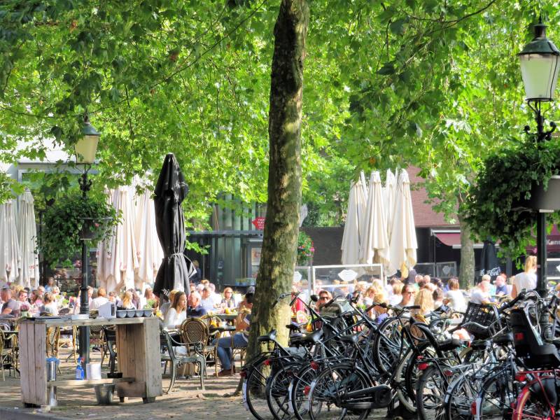 Onze Lieve vrouweplein bij lekker weer altijd gezellig op de terassen.